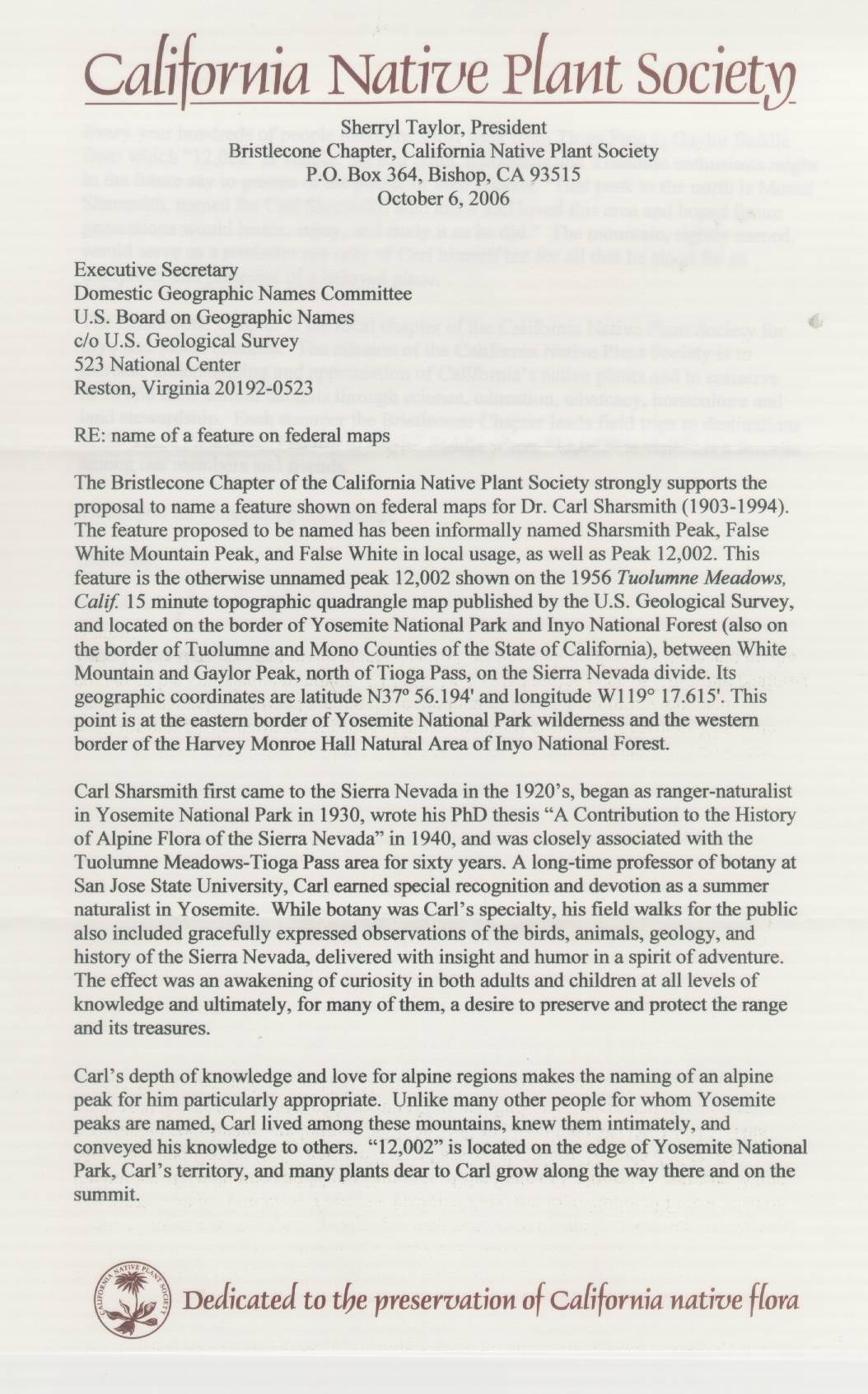 This "Supporting Statement--California Native Plant Society last modified 11/24/2006: \name4carl\n4ctest54.htm.