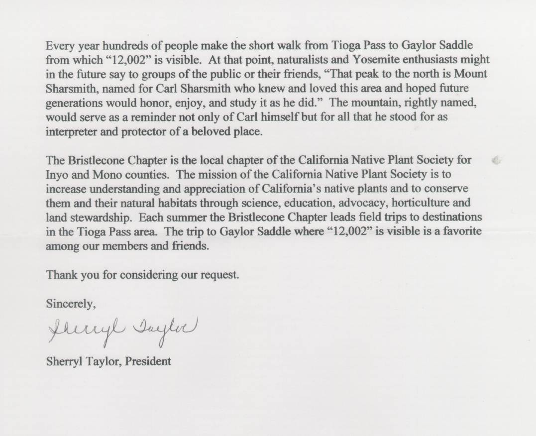Home & Synopsis/Status Reports   Purpose & Method  Who was Carl Sharsmith?  Why name a Yosemite feature for Carl?/Origin of Proposal   Which feature should be named for Carl?   How can a feature be named for Carl?   SUMMARY OF SUPPORTING STATEMENTS    Contacts/Resources Webmaster Search Form