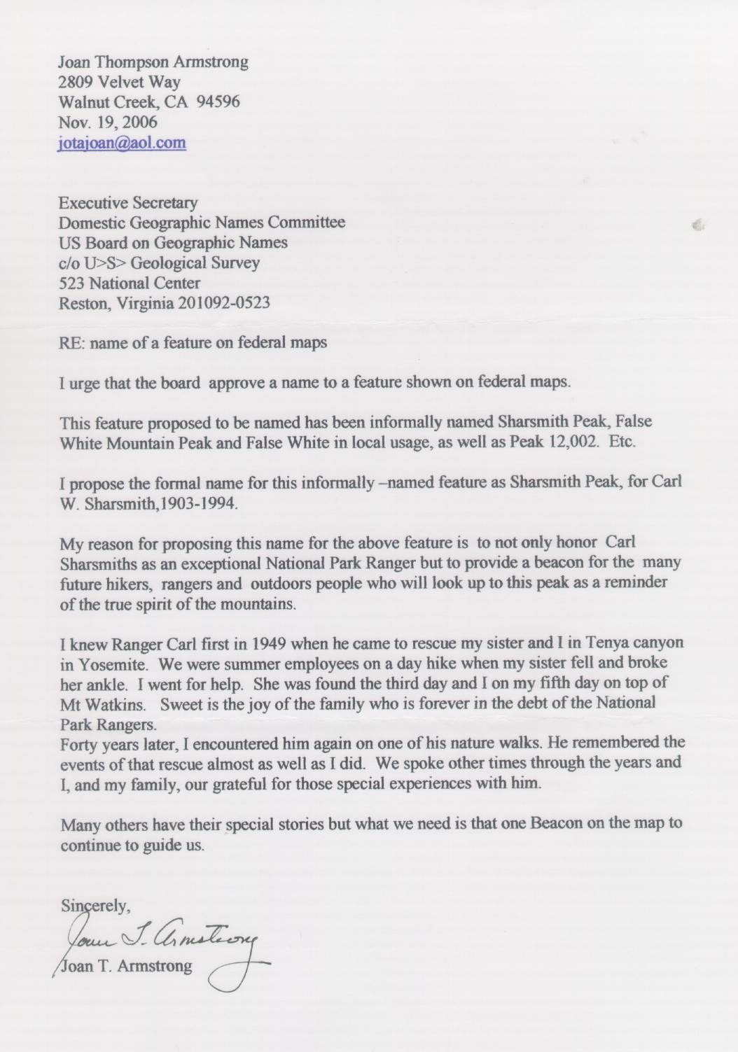 Home & Synopsis/Status Reports Purpose & Method Who was Carl Sharsmith? Why name a Yosemite feature for Carl?/Origin of Proposal Which feature should be named for Carl? How can a feature be named for Carl? SUMMARY OF SUPPORTING STATEMENTS Contacts/Resources Webmaster Search Form