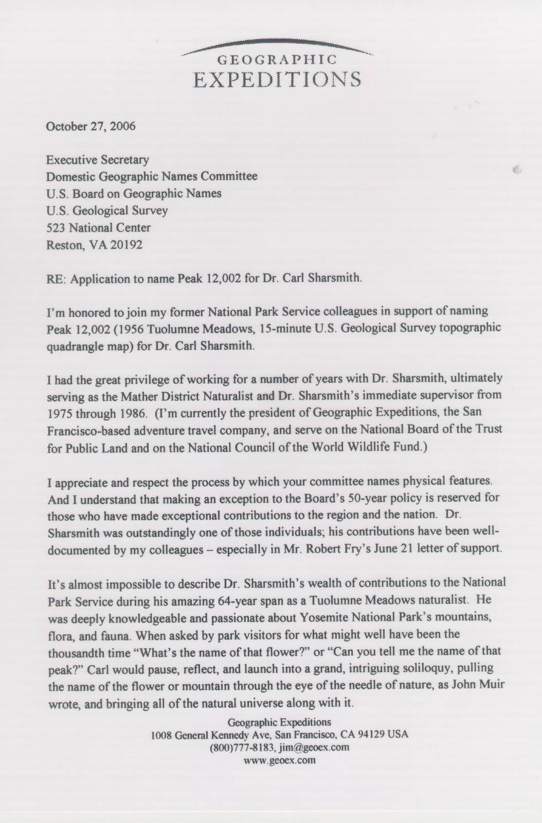 Home & Synopsis/Status Reports Purpose & Method Who was Carl Sharsmith? Why name a Yosemite feature for Carl?/Origin of Proposal Which feature should be named for Carl? How can a feature be named for Carl? SUMMARY OF SUPPORTING STATEMENTS Contacts/Resources Webmaster Search Form