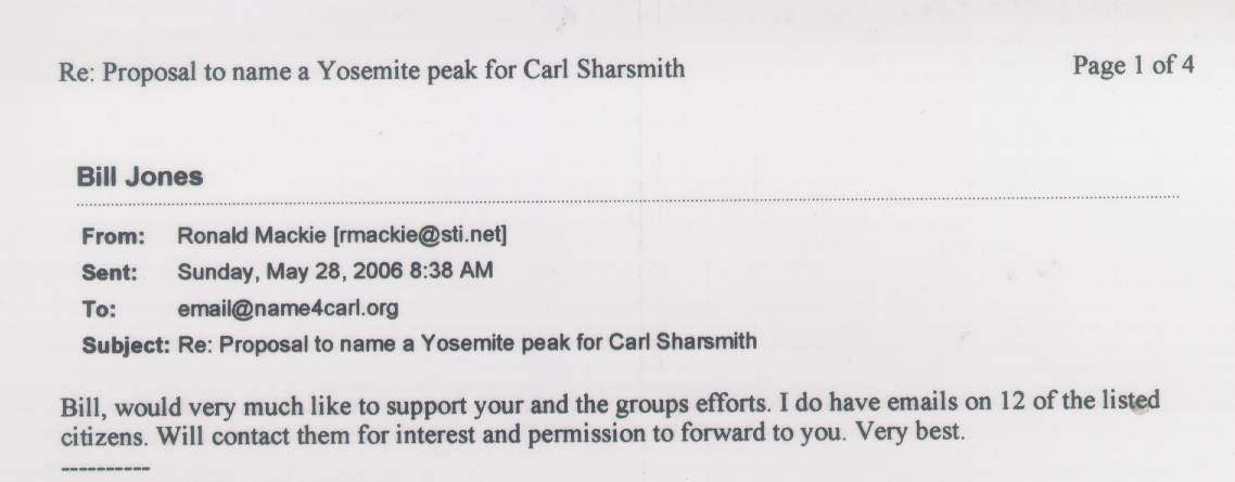 Home & Synopsis/Status Reports Purpose & Method Who was Carl Sharsmith? Why name a Yosemite feature for Carl?/Origin of Proposal Which feature should be named for Carl? How can a feature be named for Carl? SUMMARY OF SUPPORTING STATEMENTS Contacts/Resources Webmaster Search Form