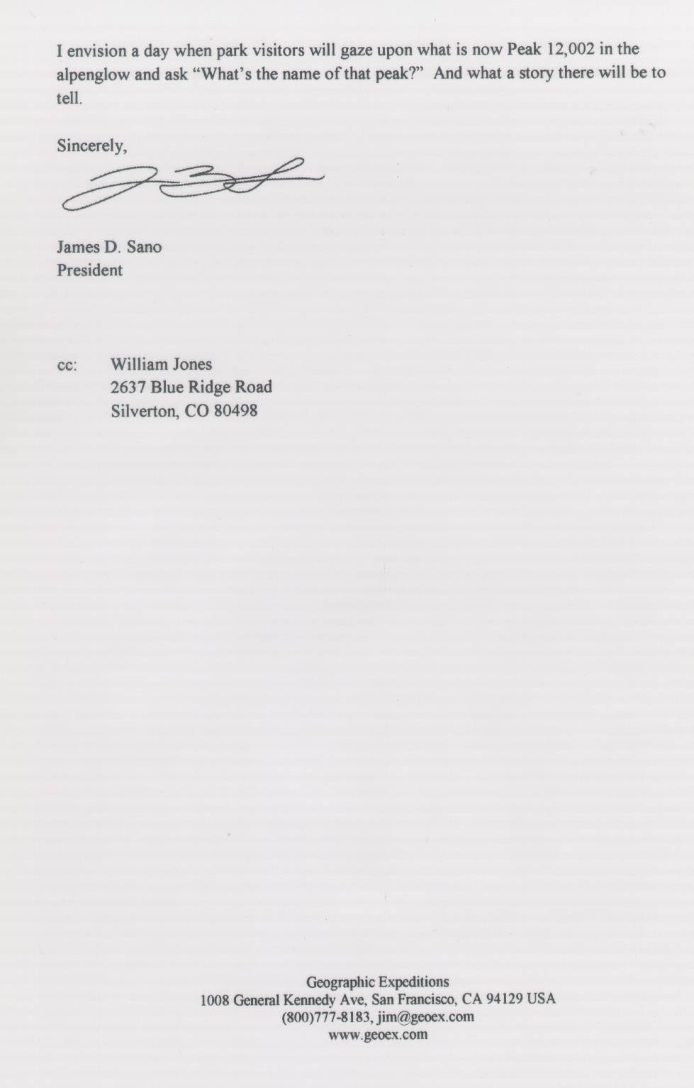 63) SUPPORTING STATEMENT OF JIM SANO