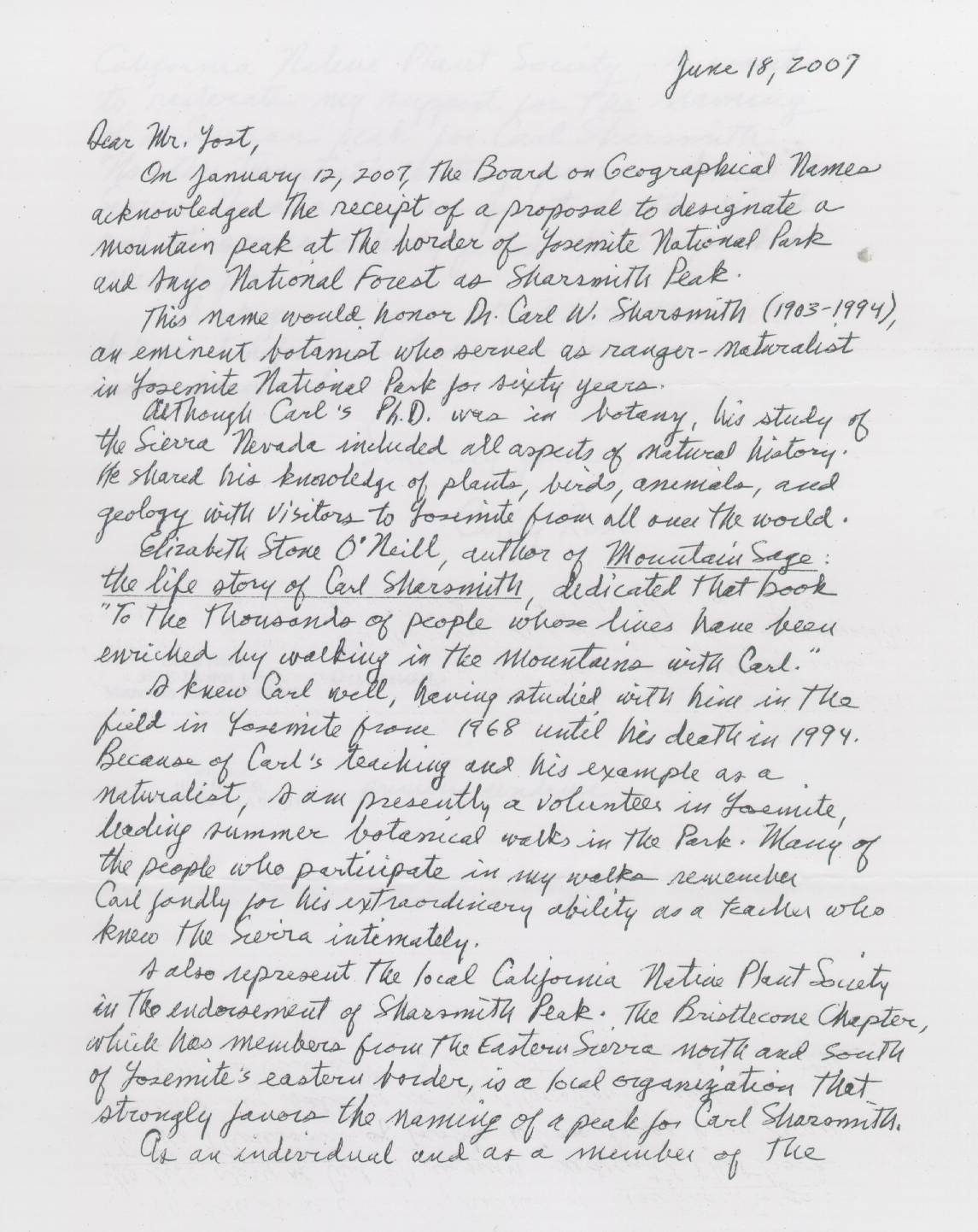 Home & Synopsis/Status Reports Purpose & Method Who was Carl Sharsmith? Why name a Yosemite feature for Carl?/Origin of Proposal Which feature should be named for Carl? How can a feature be named for Carl? SUMMARY OF SUPPORTING STATEMENTS Contacts/Resources Webmaster Search Form